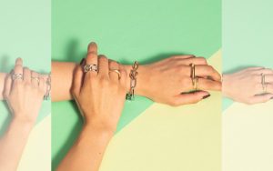ゴールド&シルバーのバイカラーが映えるブレスレットを起点に、リングもカラーミックスで仕上げて。ごちゃつかず、すっきりしたコーデが叶います。チェーン風デザインはほどよくボリュームがあり、手元の華奢見せにお役立ち。リングとブレスをデザインでリンクさせるのもおしゃれコーデのコツです。ダブルリングのようなトレンドアイテムも、プチプラだからトライしやすい!