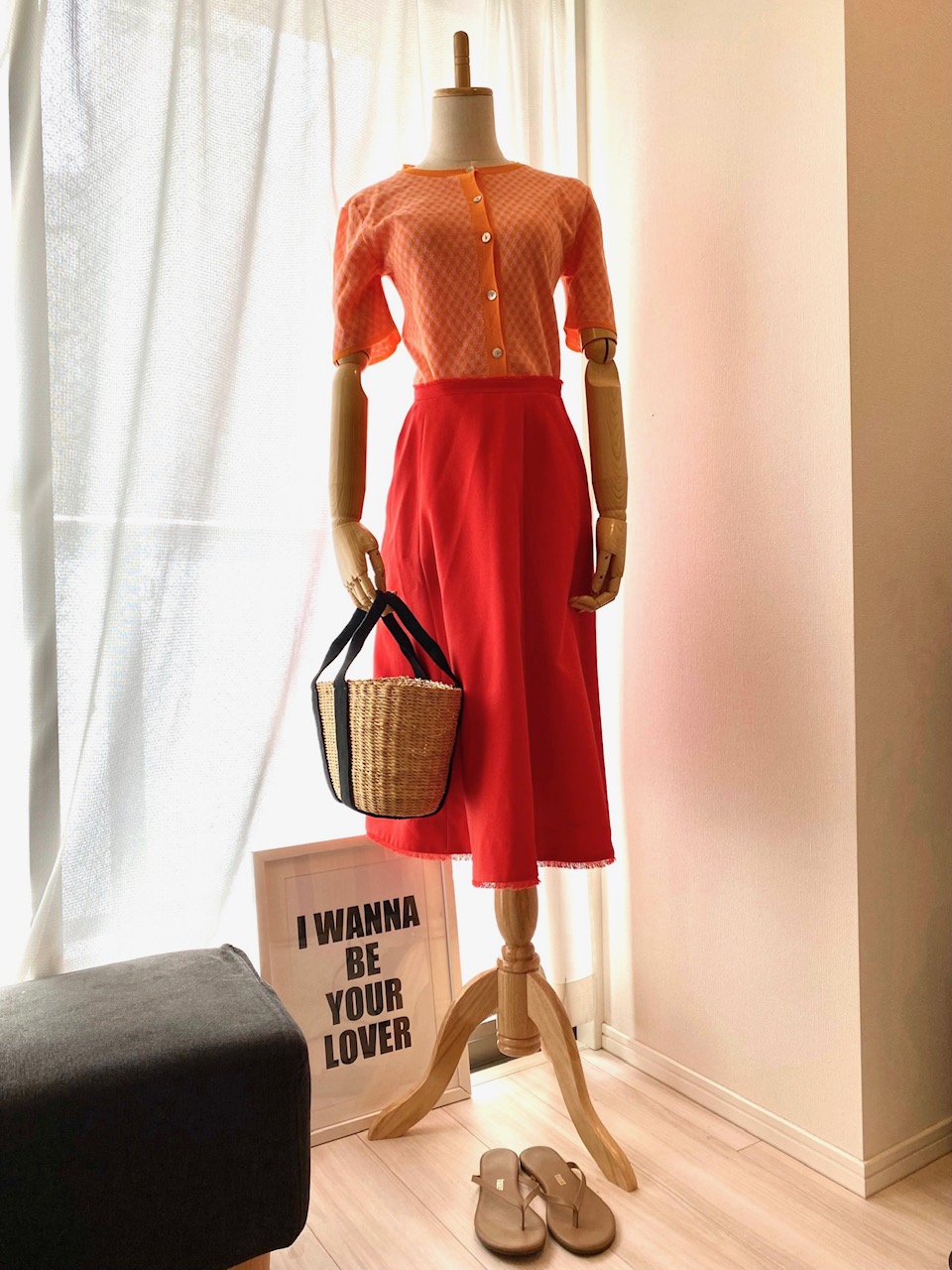 Beachsandals→TKEES、Cardigan→ZARA、Skirt→Chesty、Bag→MUUN