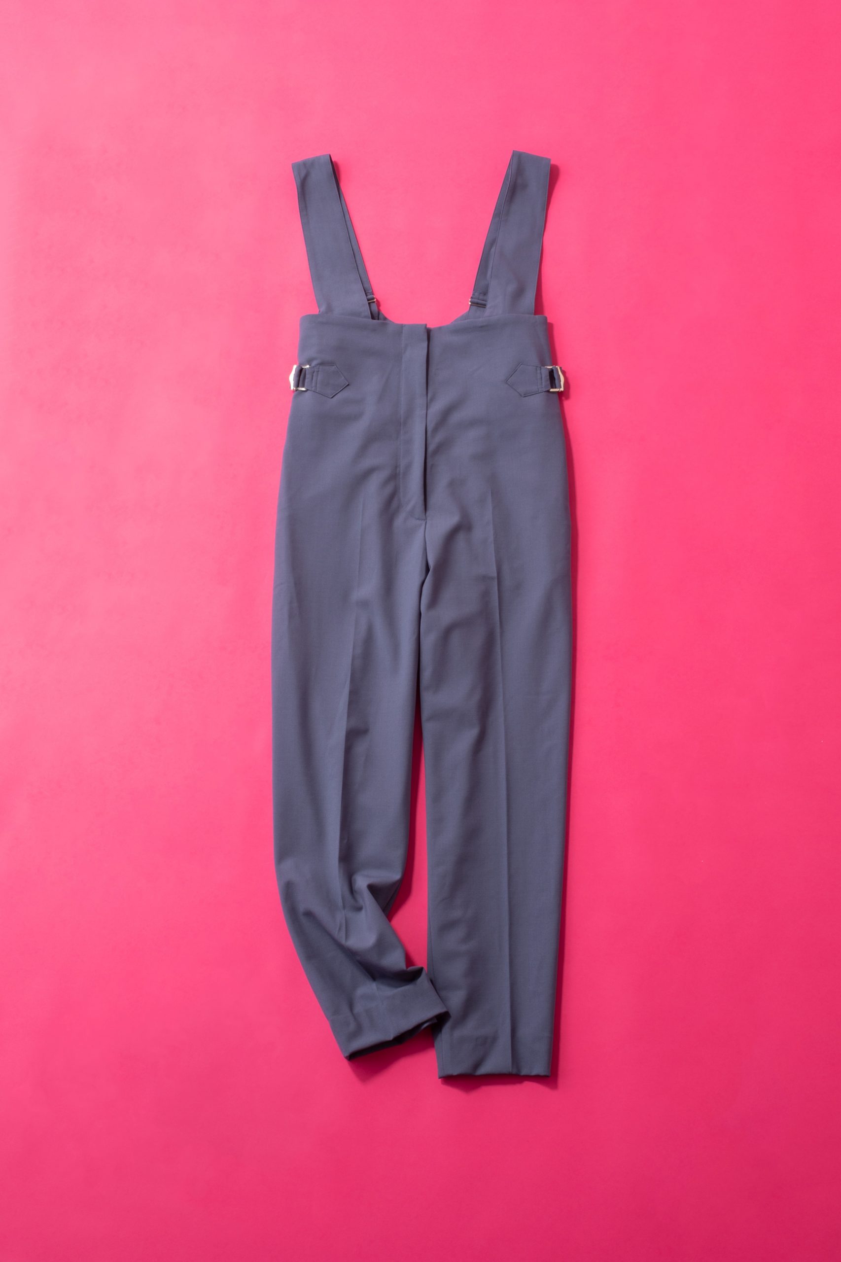「キレイめなハイウエストパンツに、肩のストラップがついた感じ! サロペットって必ずインナーを合わせるから、コーディネート感があって、アレンジが効くの。インナーをTシャツにしても、甘めなブラウスにしても、印象が変わるし。秋冬は上にニットを羽織ってもいいし! ワンピよりも汎用性があるので、私はサロペットが好きなんです」