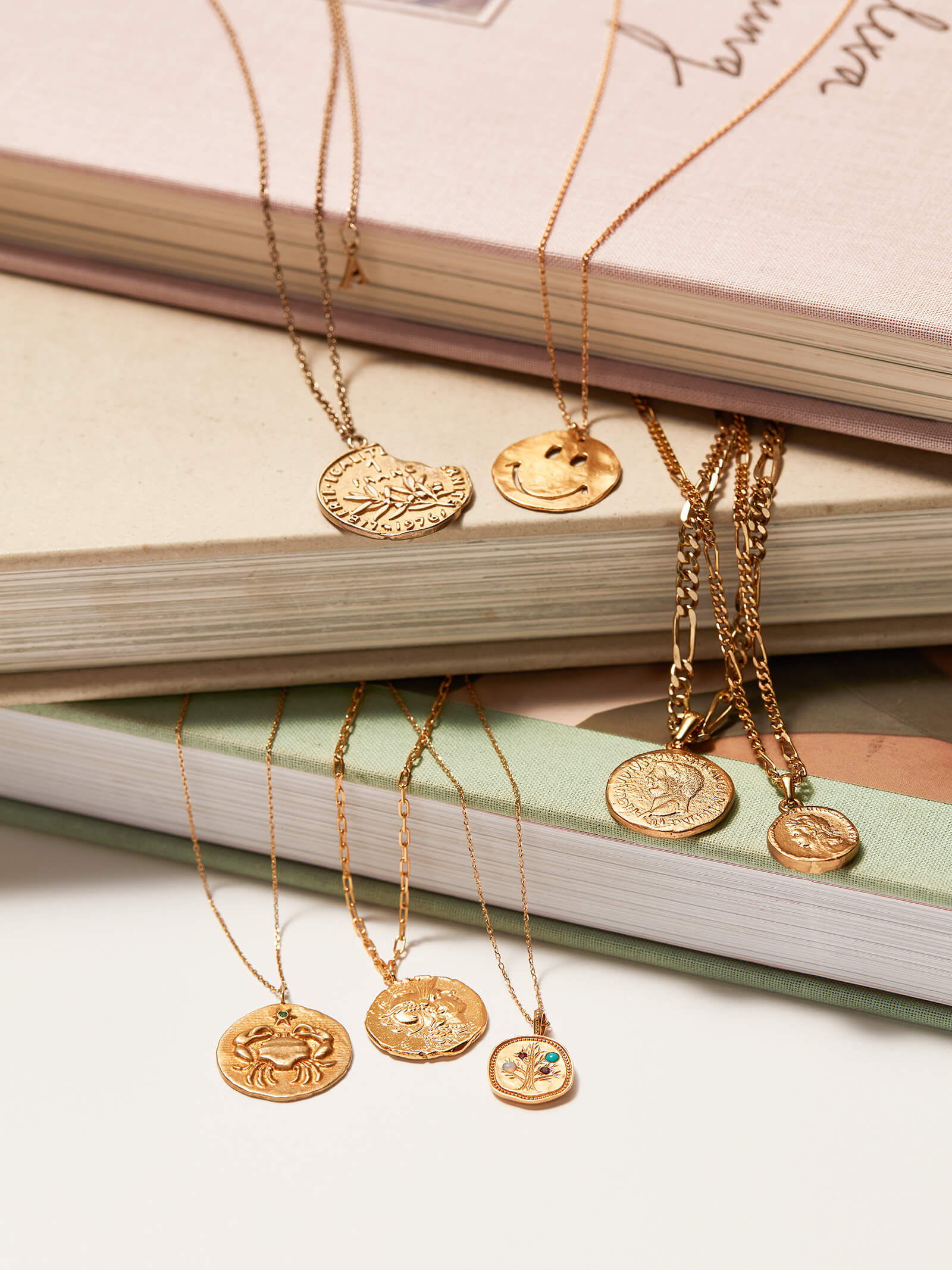 肌見せする今の季節も、重ね着が増える秋冬も、着こなしにほどよく華を添えてくれるコインネックレス。ヴィンテージライクで上品な、本物志向のデザインを集めました。コインそのものに存在感があるので、シンプルなコーディネートをこなれて見せたい日にも◎。
