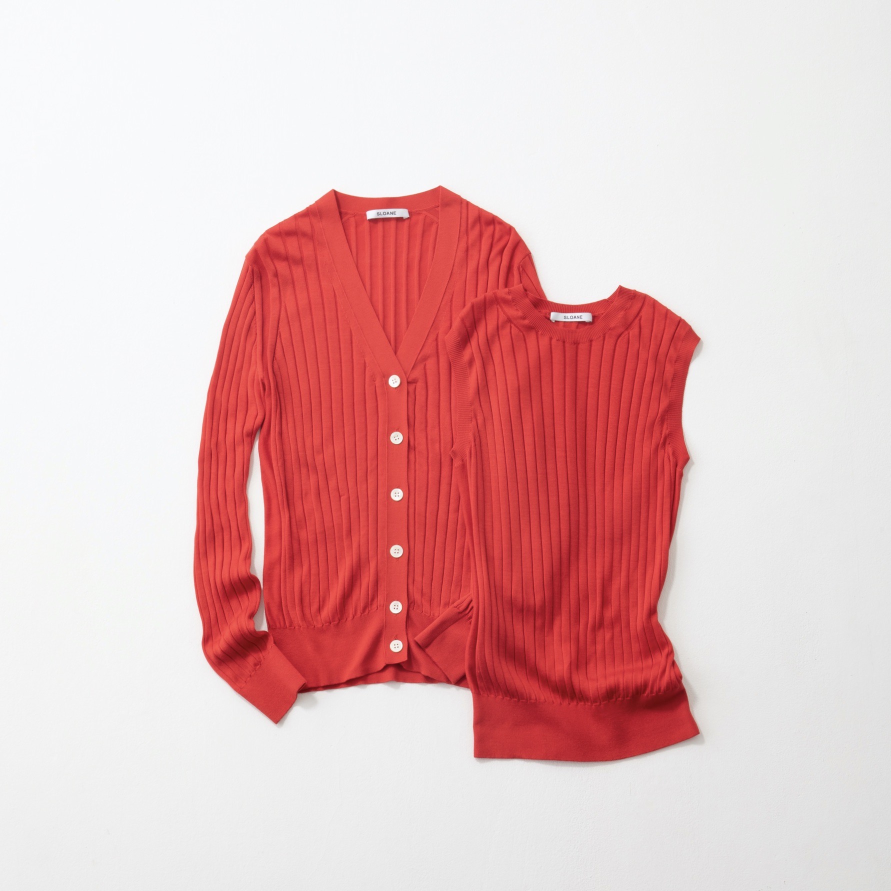 2016年に誕生した日本発のニットブランド。ユニセックスで着られるベーシックなデザインを中心に、サイズは1〜5まで幅広く展開されています。なめらかな肌触りが心地いいワイドリブニットは、なんとシルク100%。夏は涼しく、冬は暖かいシルクのアンサンブルニットがあれば、一年中活躍すること間違いなし! カーディガン¥35,200ノースリーブニット¥25,300(ともにSLOANE)