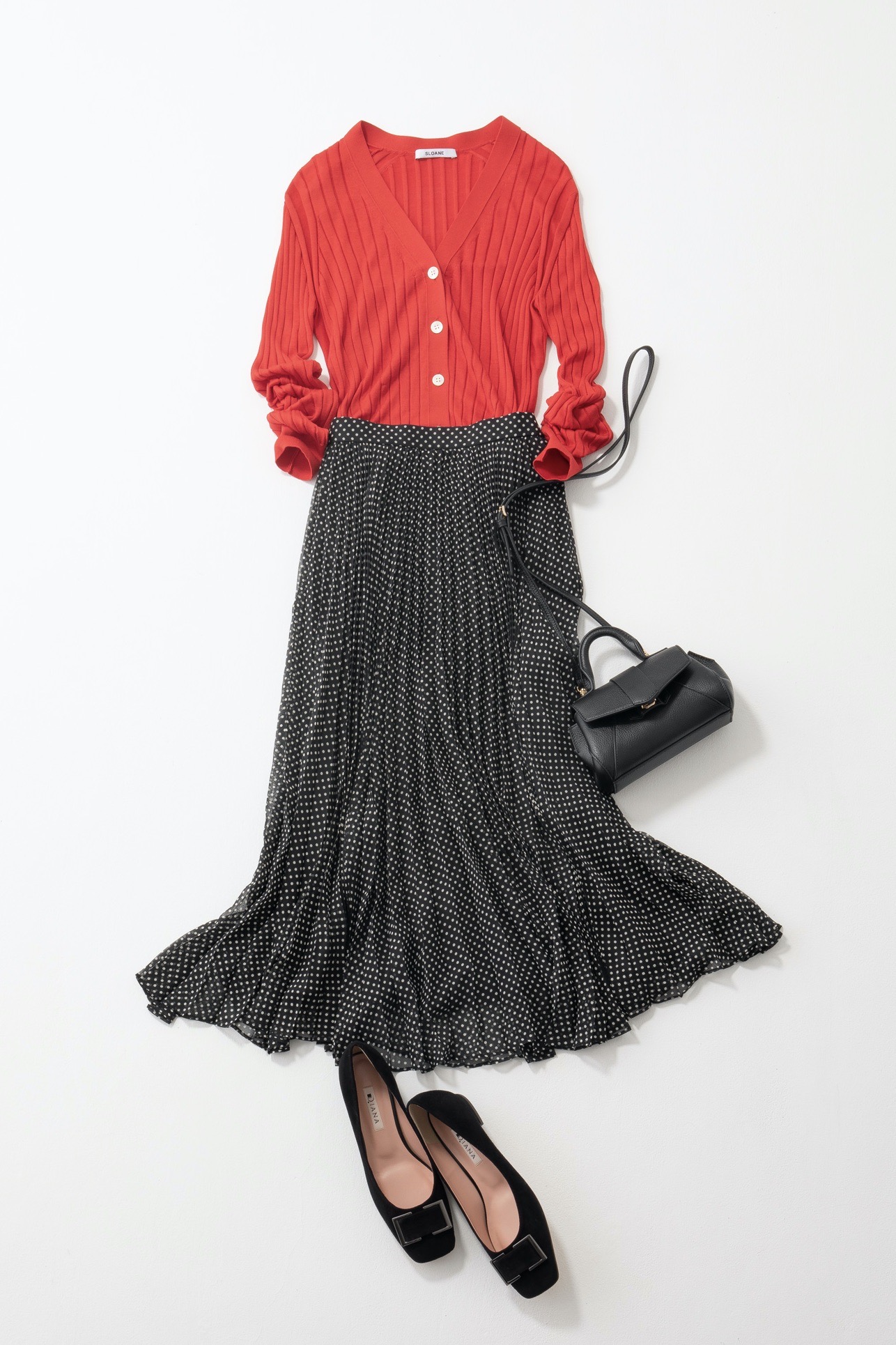 赤×ドット柄でパリジェンヌ風のLADYな装いが完成
