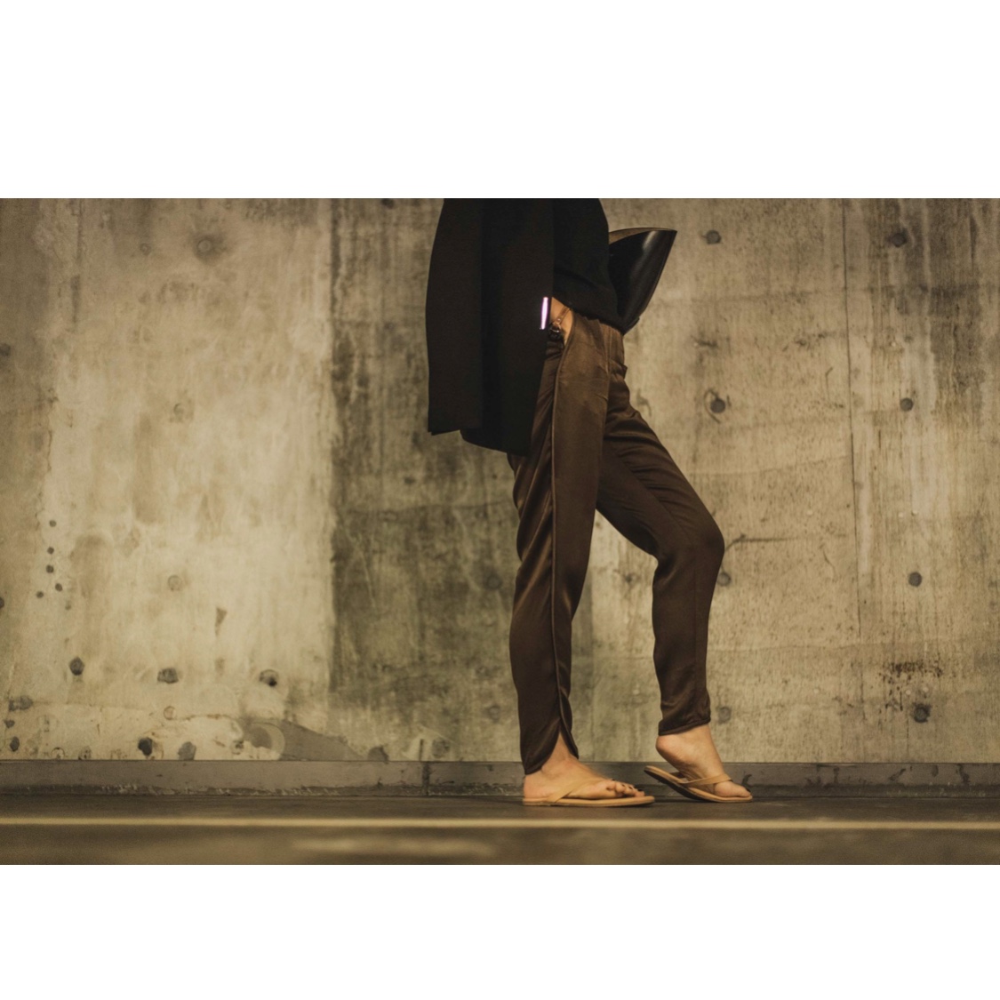 それがこちら、ZARAのサテンスリットパンツ・ブラウン(サイズXS)です。