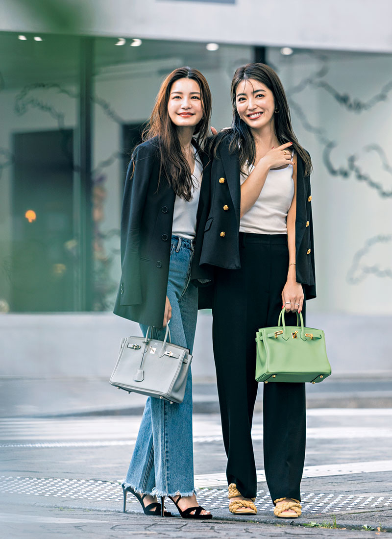 (左)Jacket : Theory Tanktop : ZARA Pants : vicente Bag : HERMÈS Shoes : JIMMY CHOO