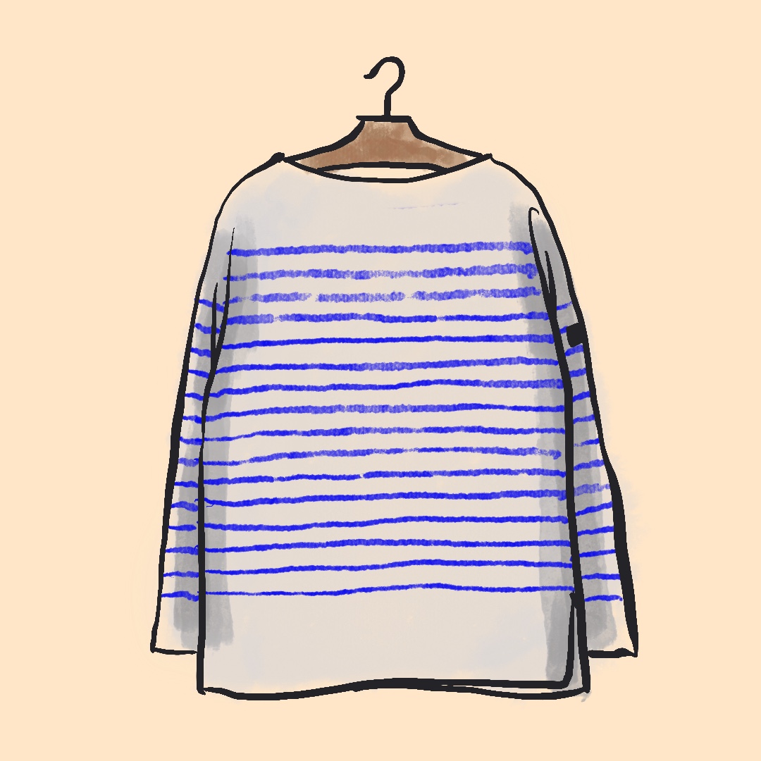 フランスとスペインにまたがるバスク地方の漁師が愛用していた仕事着を元にして作られたといわれる、マリンアイテムの代表選手。ボーダー柄、ボートネック、厚手のコットン素材が特徴ですが、例外的に無地のバスクシャツもあります。ブランドなら、セント ジェームスやルミノアが人気。