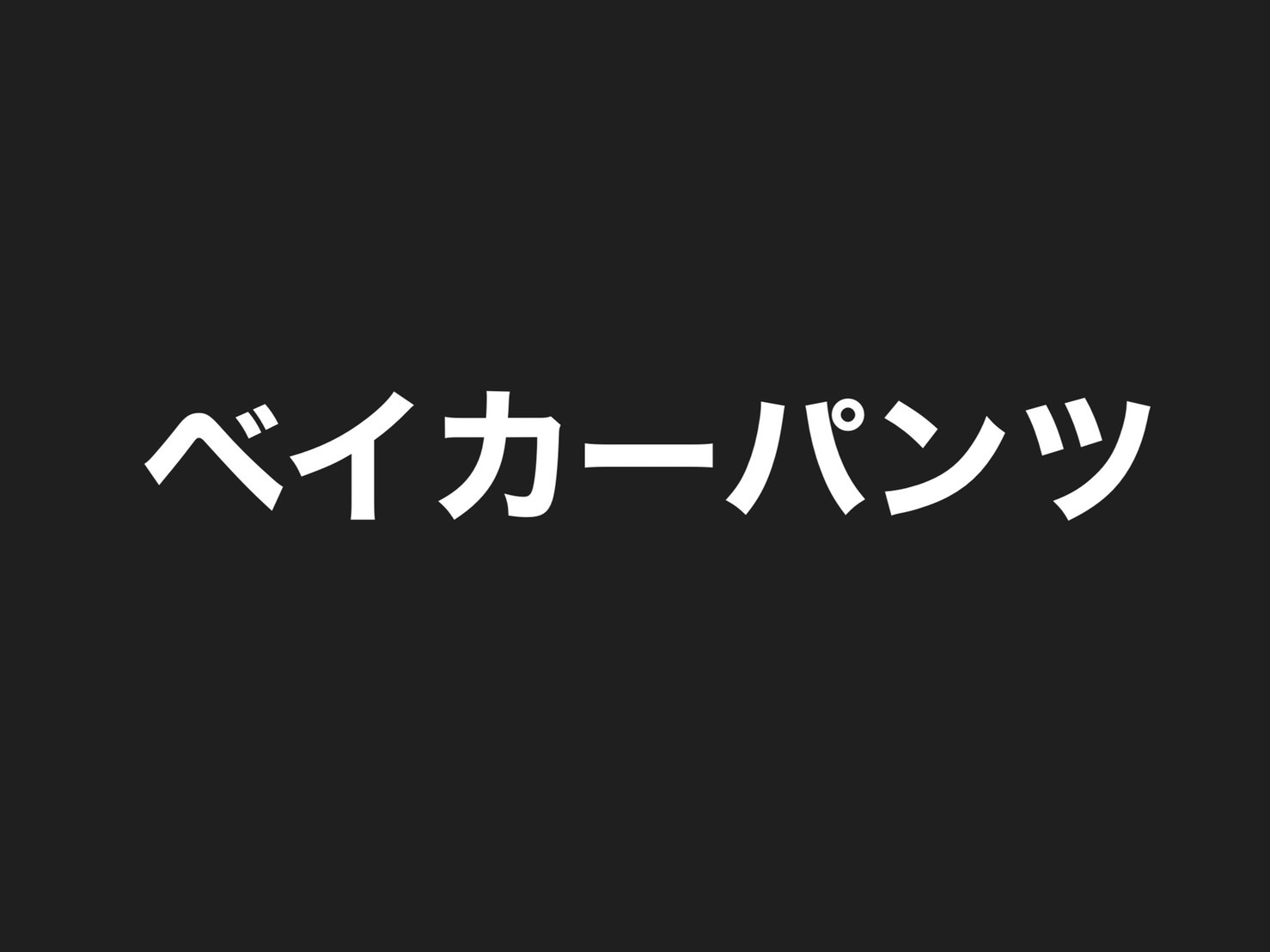 フロントやバックに外ポケットがついたワークパンツのこと。“ベイカー”とはパン職人を指し、パン職人の仕事着だったことからそう呼ばれているそうです。チノパンやカーゴパンツほどメンズライクになりすぎず、コーディネートしやすいことで人気に。