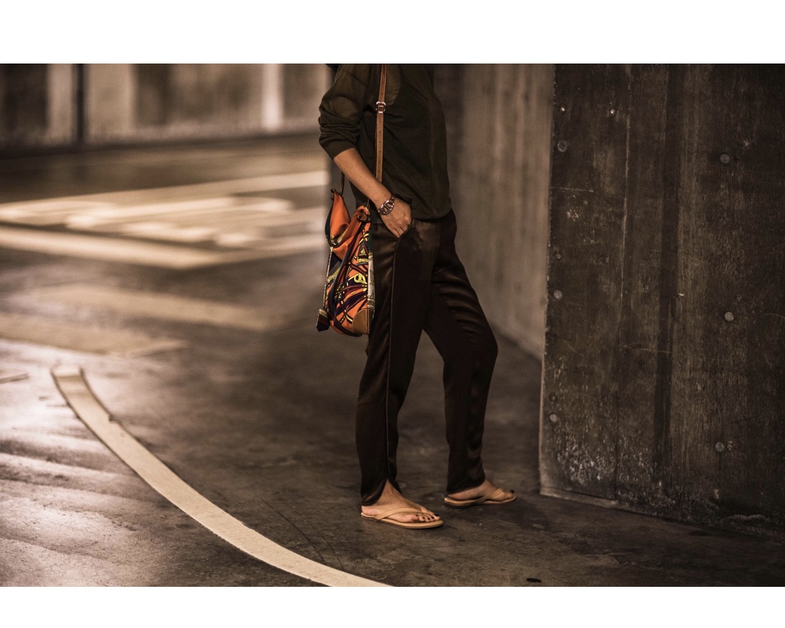 ざっくりとしたニットを着ると、ニットに着られて見えることも多い低身長の私ですが、このシアーニットはボリュームが出なくてバランスよし。そして合わせたボトムスはそう、先日ご紹介したZARAのテロテロパンツ!シアーニットとテロパンで涼しいけれど、深いカーキ×ブラウンでちゃっかり秋気分です。