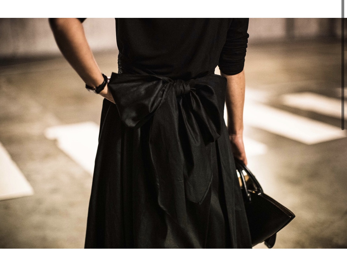 甘いモノ好きはそうやめられないけれど、中途半端な甘さ(儚いガーリーなかんじ)は、少女でもないのにさすがにキツい。だから甘いモノを取り入れたいときは躊躇せずに思い切り!がマイルール。そのほうがモードっぽく振れると思います。このスカートはどーんとおっきなリボンが潔く、逆にモード。このリボンがちっちゃなリボンだったりすると、大人がオシャレに着るのは逆に難しいんですよね。