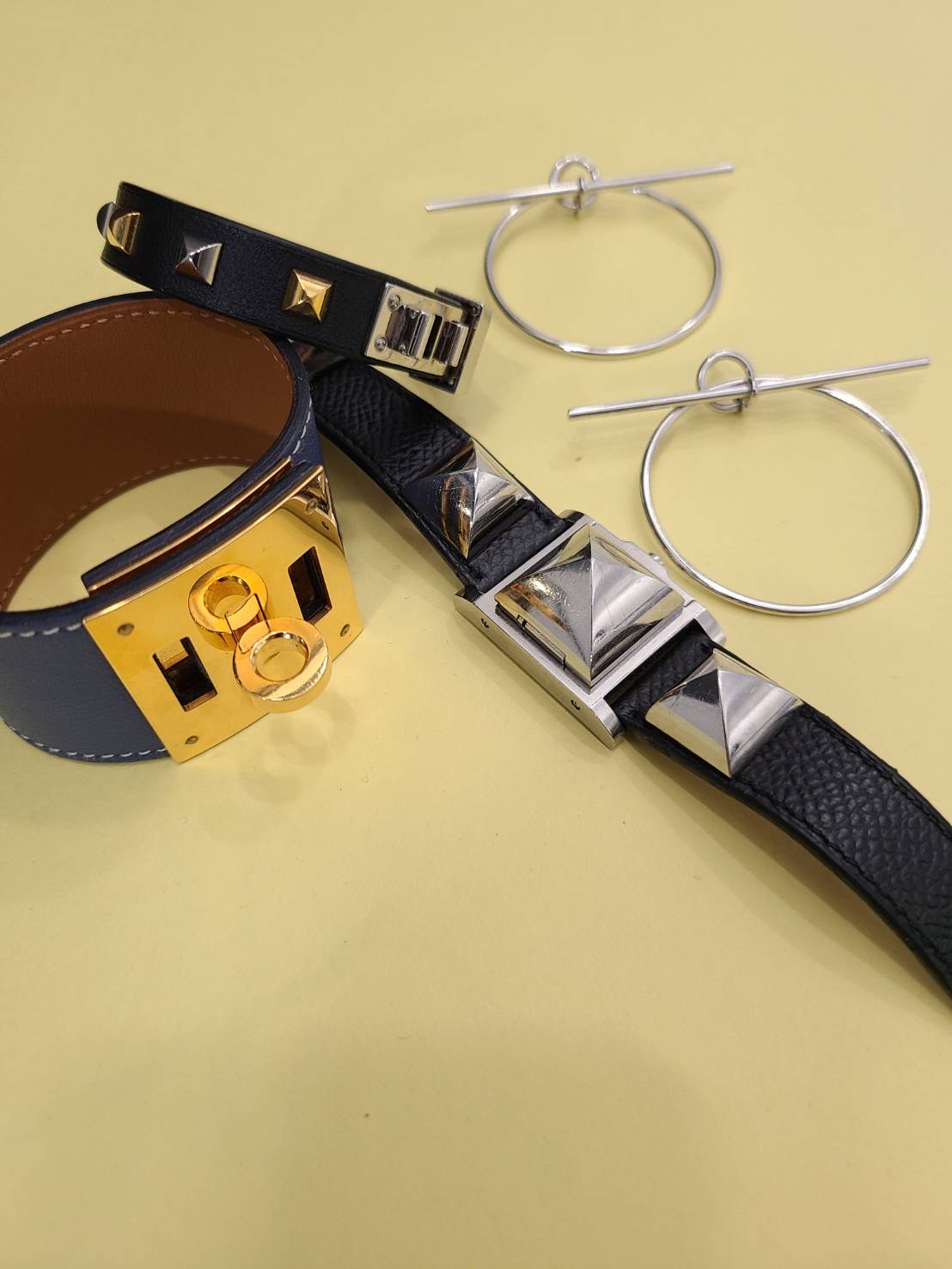 「都内のほか、旅先など国内外のブティックにふらっと立ち寄ったときに、思いがけず出合えたエルメスたち。エルメスのシルバーアクセサリーと小物は探すとなかなか見つからなかったりするので、その時の出合いがとっても大事で。ピン!ときたら、迷わず買うようにしています。アクセサリーはインパクトのあるデザインが好きなので、メドールシリーズをレイヤードして、シンプルなコーデの日の主役に据える感じで楽しんでいます。素敵だけど気負いなくデイリーに使えるので、これからもコレクションしていきたいです」