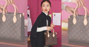 「女性の永遠の憧れでもあるモノグラム。無地はもちろん、今日みたいな柄のアイテムにも合わせやすいところも魅力ですよね」と話すかぢちゃん。「サックプラ BBは、モノグラム・キャンバスとスタイリッシュなシルエットで、眺めるだけでうっとりするデザイン。マチがあるから、カードケース、携帯、カメラ、ドライフルーツやナッツ、リップ、AirPods、本、ボールペン…普段持ち歩く荷物が多い私でも使いやすそうです」