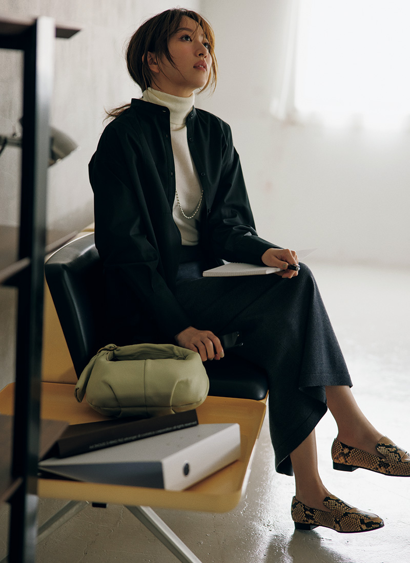 白ニットに黒シャツを羽織って仕事感を盛り上げて。『日曜日ランチがてら会ってあげるよ』。イラッとするけど背に腹はかえられない。でも、今ならフラットに話せる気がする。バッグ¥41,800(トフ&ロードストーン/T&L)シューズ¥25,300(ファビオ ルスコーニ & ウォッシュ/WASH ルミネ横浜店)ネックレス¥44,000(ペヨテ バード/ZUTTOHOLIC)