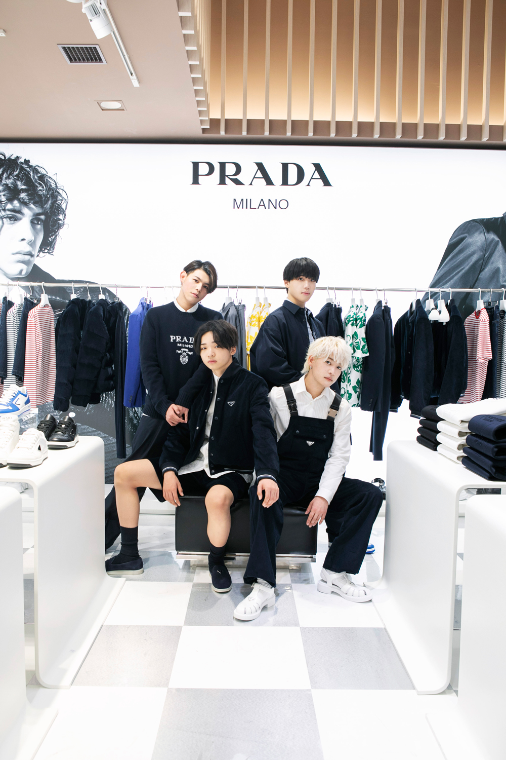 ポップアップ「プラダ ギャラリー」の開催を記念して、大注目グループ「BE:FIRST」のLEOさん、RYOKIさん、SHUNTOさん、RYUHEIさんが会場にお目見え。ポップアップでGETできるアイテムを身にまとって登場した4人に、来場した感想を聞きました。