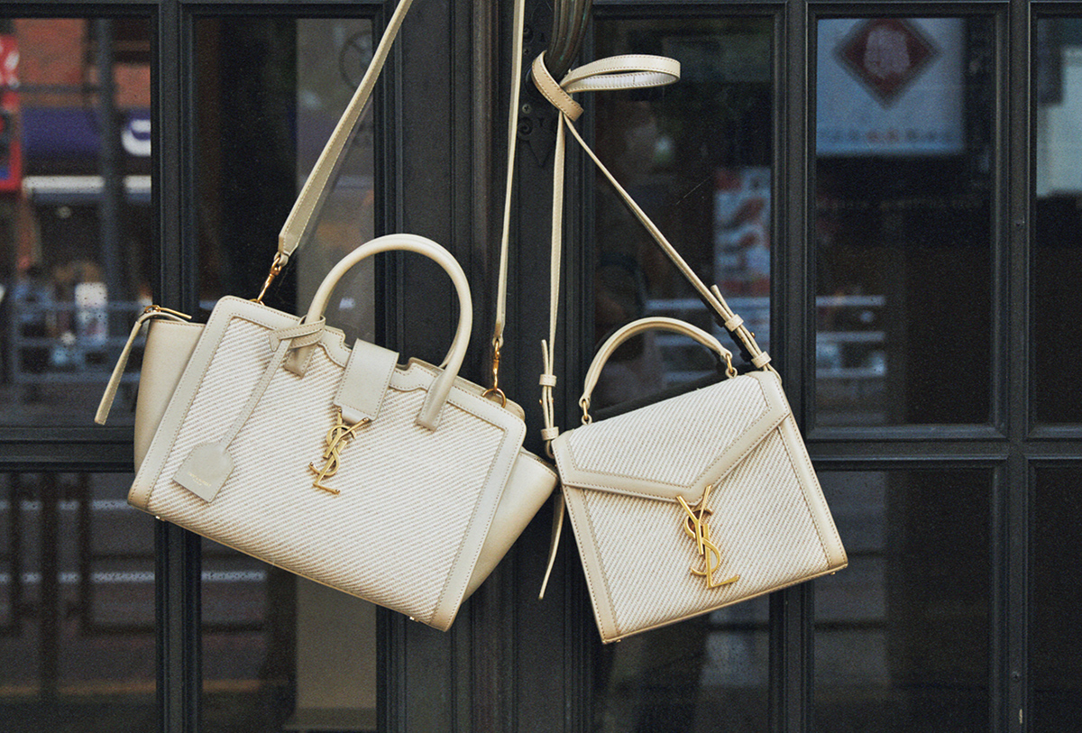 サンローランのアイコンバッグのひとつである、カサンドラシリーズ。この春はコットンキャンバスを幾何学的な模様に仕上げた新作が登場しました。ナチュラルなベージュで優しげな印象になれそうです。