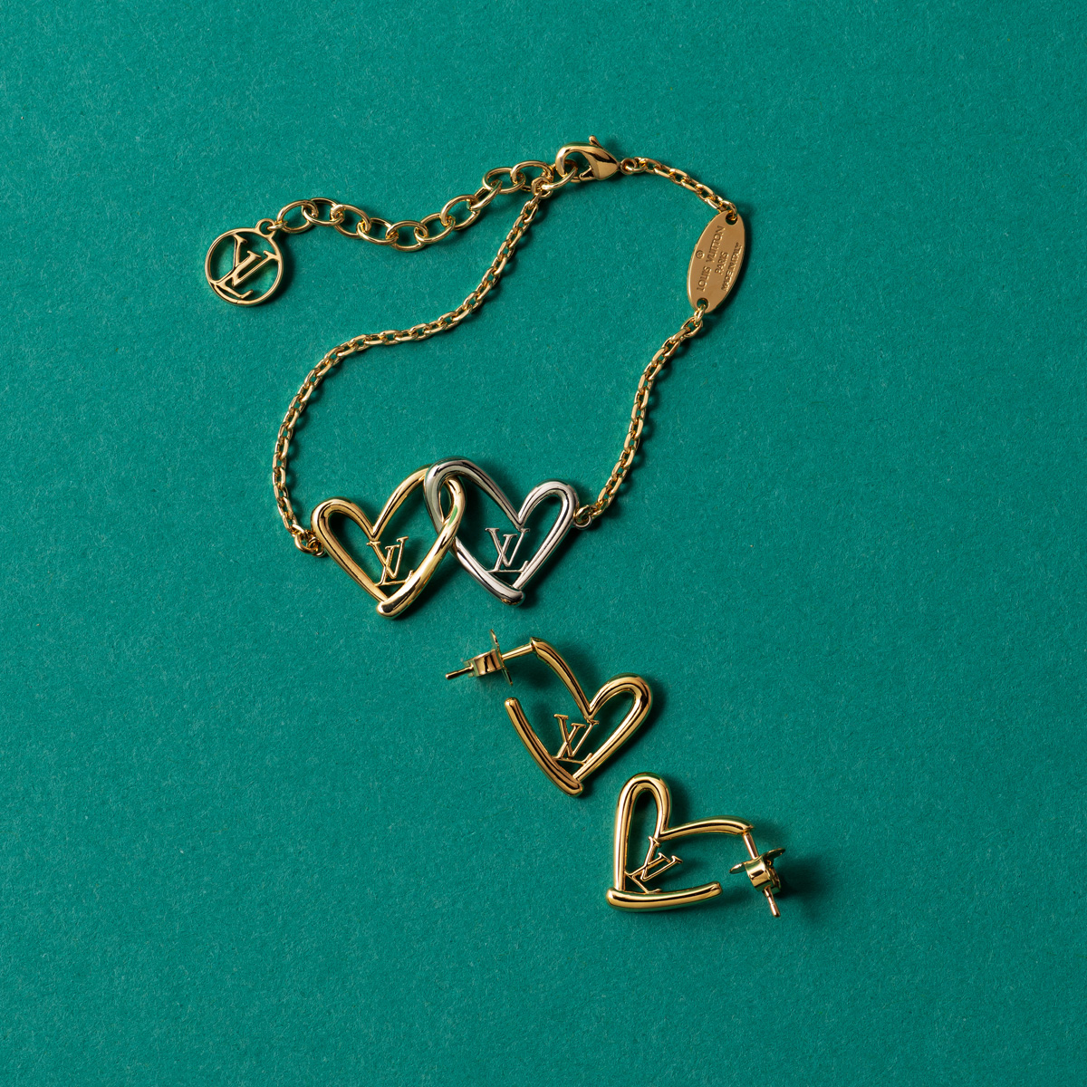 ブレスレット「ブラスレ・ハート フォーリンラブ」¥55,000ピアス「ブックル ドレイユ・ハート フォーリンラブPM」¥55,000(ともにルイ・ヴィトン/ルイ・ヴィトン クライアントサービス)
