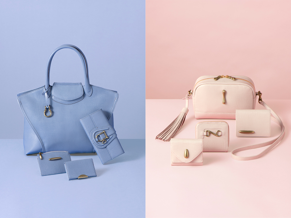 紫陽花のように奥行きのある青紫が上品な印象の「あじさい」と、貝殻のようなやさしいピンクが大人の可愛らしさを引き立てる「シェルピンク」の新色を、2022年1月28日(金)より、公式オンラインストアにて発売をスタート。新作から定番人気のアイテムまでバリエーション豊富に展開。