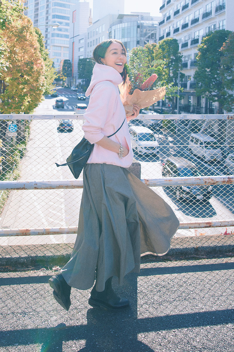 ロンスカにはスニーカーだった昨シーズンまでとは打って変わって、今季はサイドゴアブーツが必須に。今季気になるパステルのフーディも、ゴツい足元効果でカッコよさがアップします。フーディ¥37,400スカート¥36,300(ともにエイトン/エイトン青山)バッグ¥30,800(ヴァジック/ヴァジックジャパン)ブーツ¥133,100(セルジオ ロッシ/セルジオ ロッシ カスタマーサービス)イヤリング¥5,670(アビステ)ブレスレット¥12,100(イン ムード/フォーティーン ショールーム)
