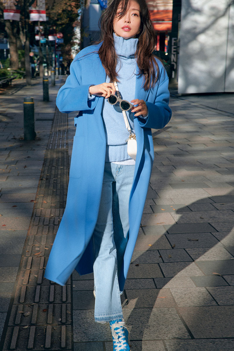 好きな街に映えるブルーのワントーンでカジュアルもスペシャルに