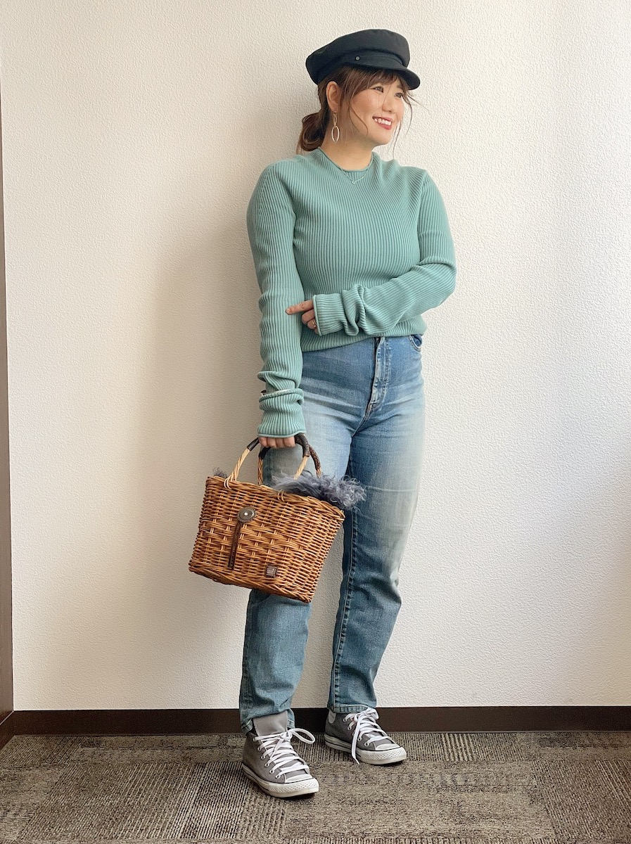 KNIT:NEWHOUSE DENIM:NEWHOUSE HAT:CA4LA BAG: Athena New York SHOES:Converse