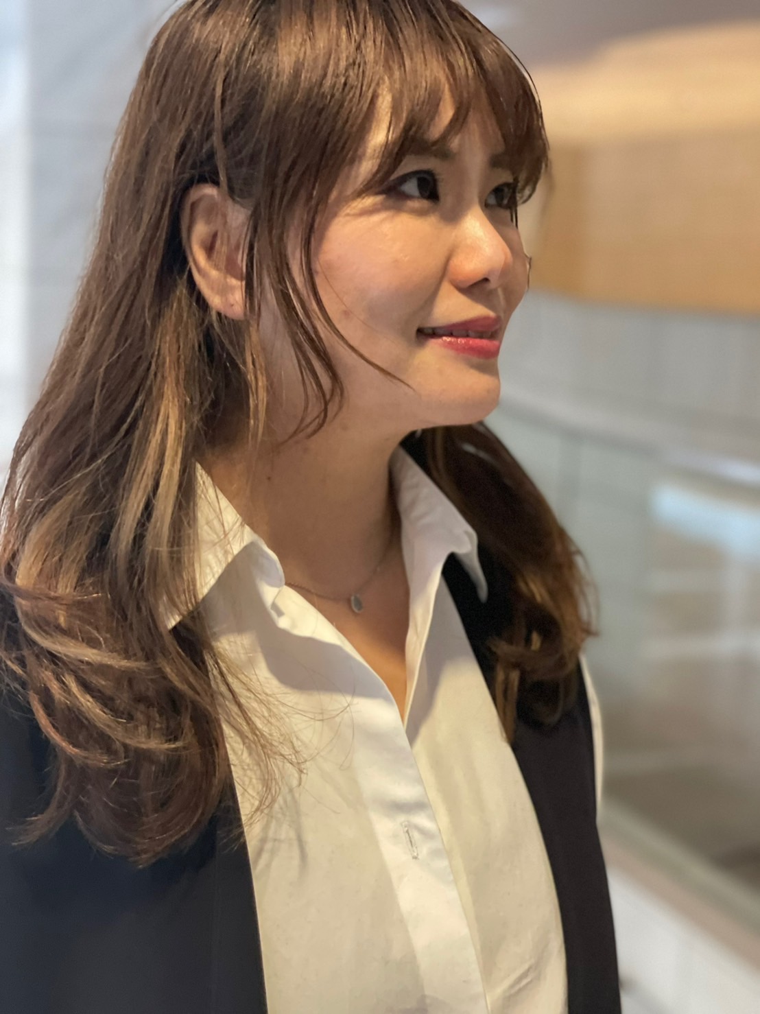 「ぽっちゃりなうえ、首が短いのでシャツのボタンは基本多めに開けて。髪は下ろして両サイドに分けると、肩のラインが隠せる上、首が長く見える錯覚が(笑)。もちろん、顔周りのおくれ毛(Violetの前原穂高さん考案の“あざと毛“と言います)も駆使して顔の面積を削ります!」