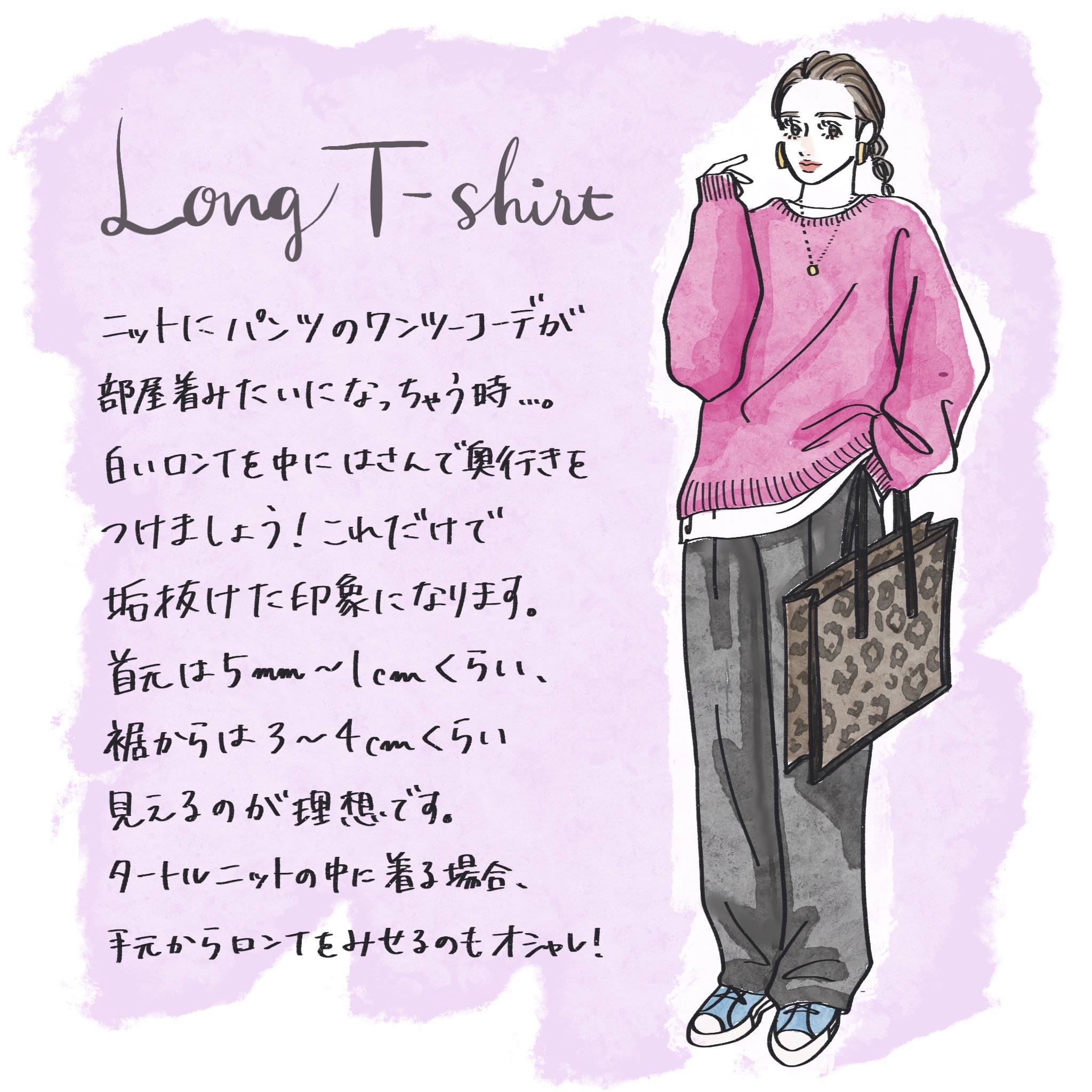 スタイリストがイラストで分かりやすく解説!【冬のマンネリ解消❻レイヤードに超便利!白ロンT】