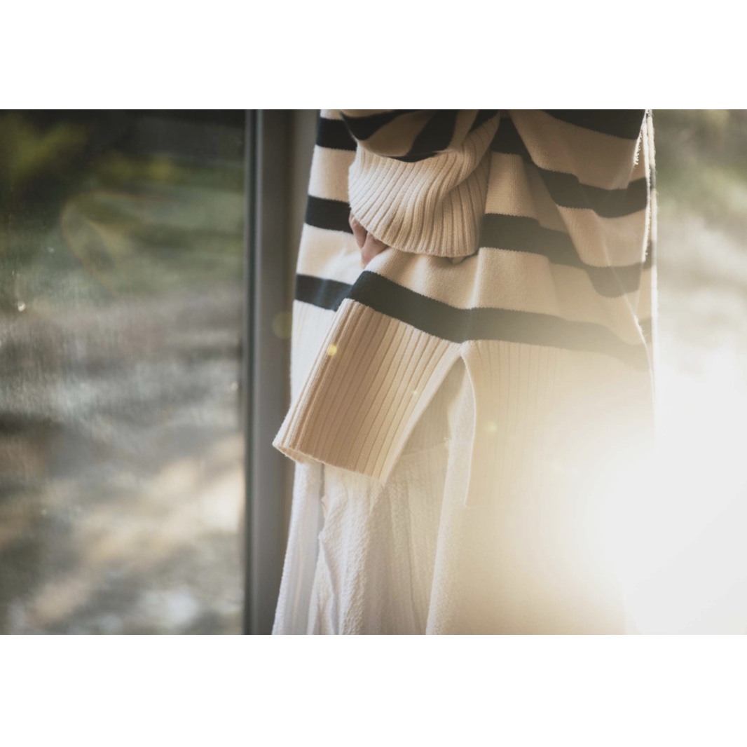 で、それを解決する一番簡単な方法は「モノトーンで合わせる」ことなんだとか。…というワケで買っちゃいました、春ニットを白黒(よく見ると濃紺かも)ボーダーで!