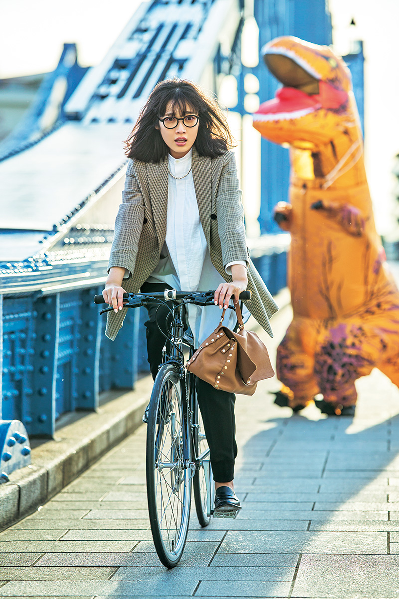 だから恐竜は絶滅したのね。私も変化しなくちゃ!ソウタロウ先輩、見ていて!バッグ¥156,200(J&M デヴィッドソン/J&M デヴィッドソン 青山店)パンプス¥52,800(ペリーコ/アマン)スカーフ¥13,200(マニプリ)ネックレス¥6,300(アビステ)ブレスレット¥36,960(パズ コレクティブ/ZUTTOHOLIC)