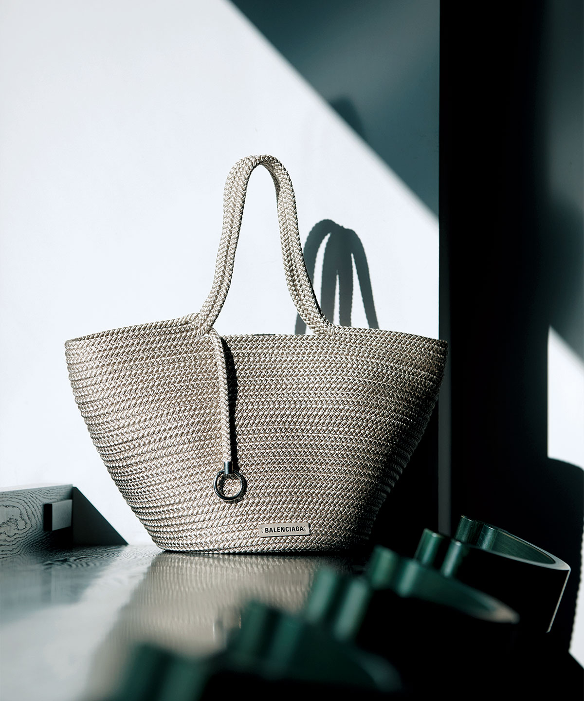 ビストロにあるラタン家具のような編み方で、ヘルシーな雰囲気を印象づけるデザイン。フェイクレザーを使用し、バスケットバッグを〝ナチュラル〟の枠から格上げしているのがバレンシアガらしさの秘密。