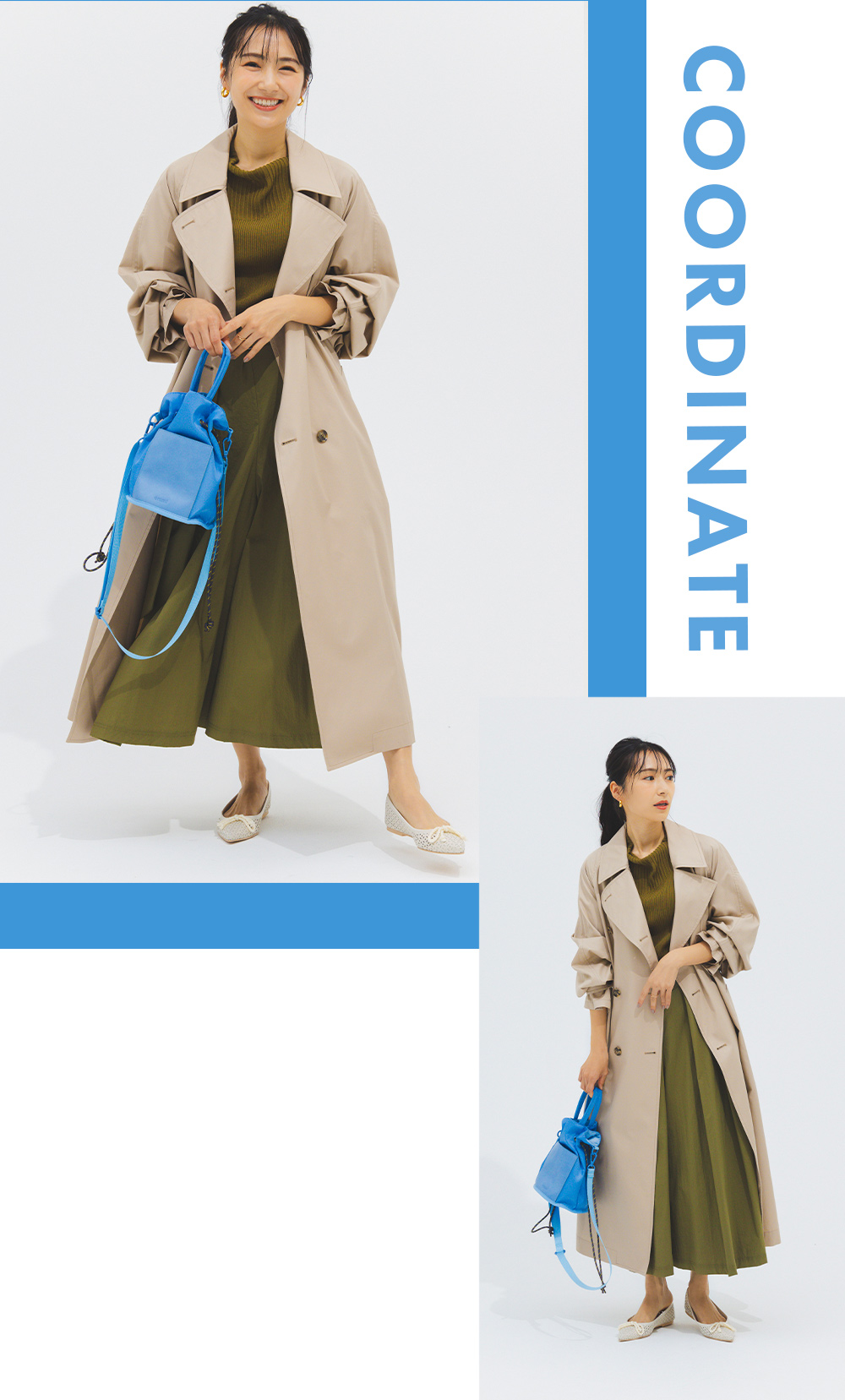キレイめコーデのハズしに、巾着バッグが活躍。鮮やかなブルーのバッグが引き立つように、コーデは大人らしいベーシックカラーに統一します。バッグ¥7,480〈H24×W17×D15cm〉(エミ アトリエ/エミ ニュウマン新宿店)トップス¥13,200(MIESROHE)スカート¥24,200(ルーニィ)コート¥39,600(バビロン/エレメントルールカスタマーサービス)ピアス¥8,580(ドーターズジュエリー)リング¥39,600(ココシュニック)シューズ¥36,300(プリティ・バレリーナ/エフイーエヌ)