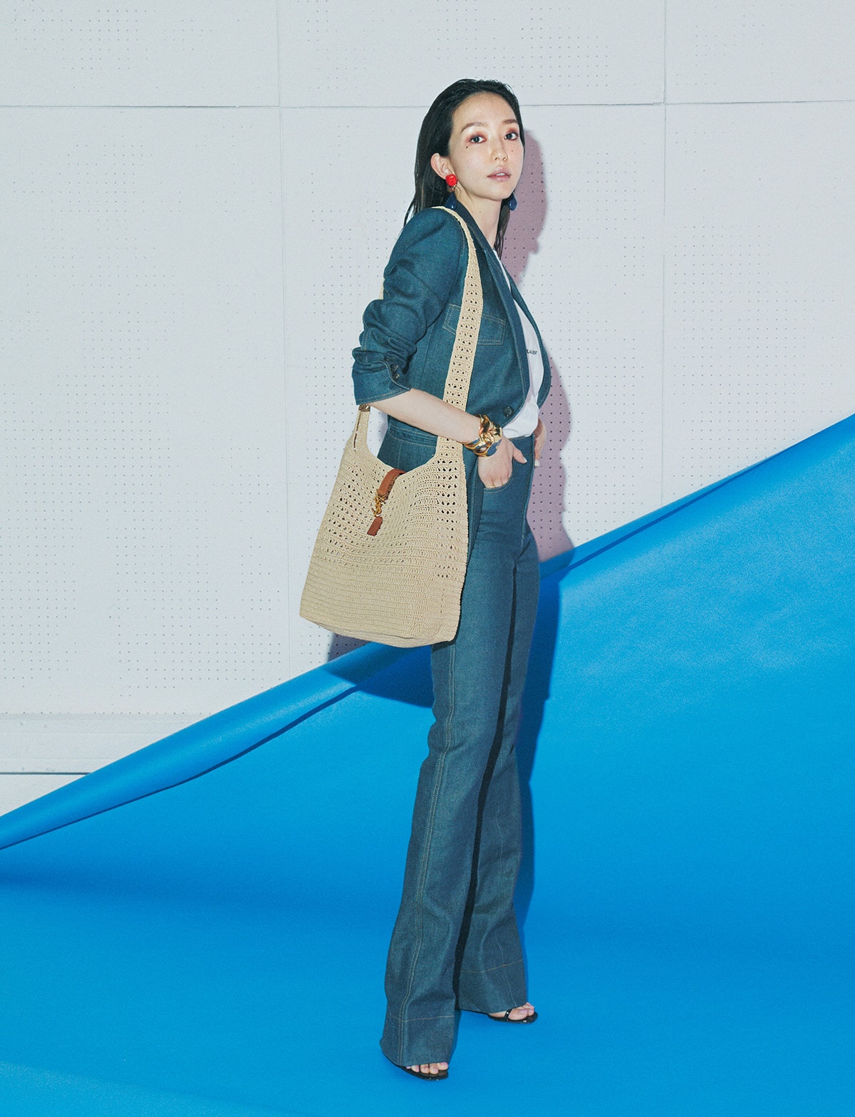 ラフィア素材でクールなセットアップに気持ちのいい抜け感を