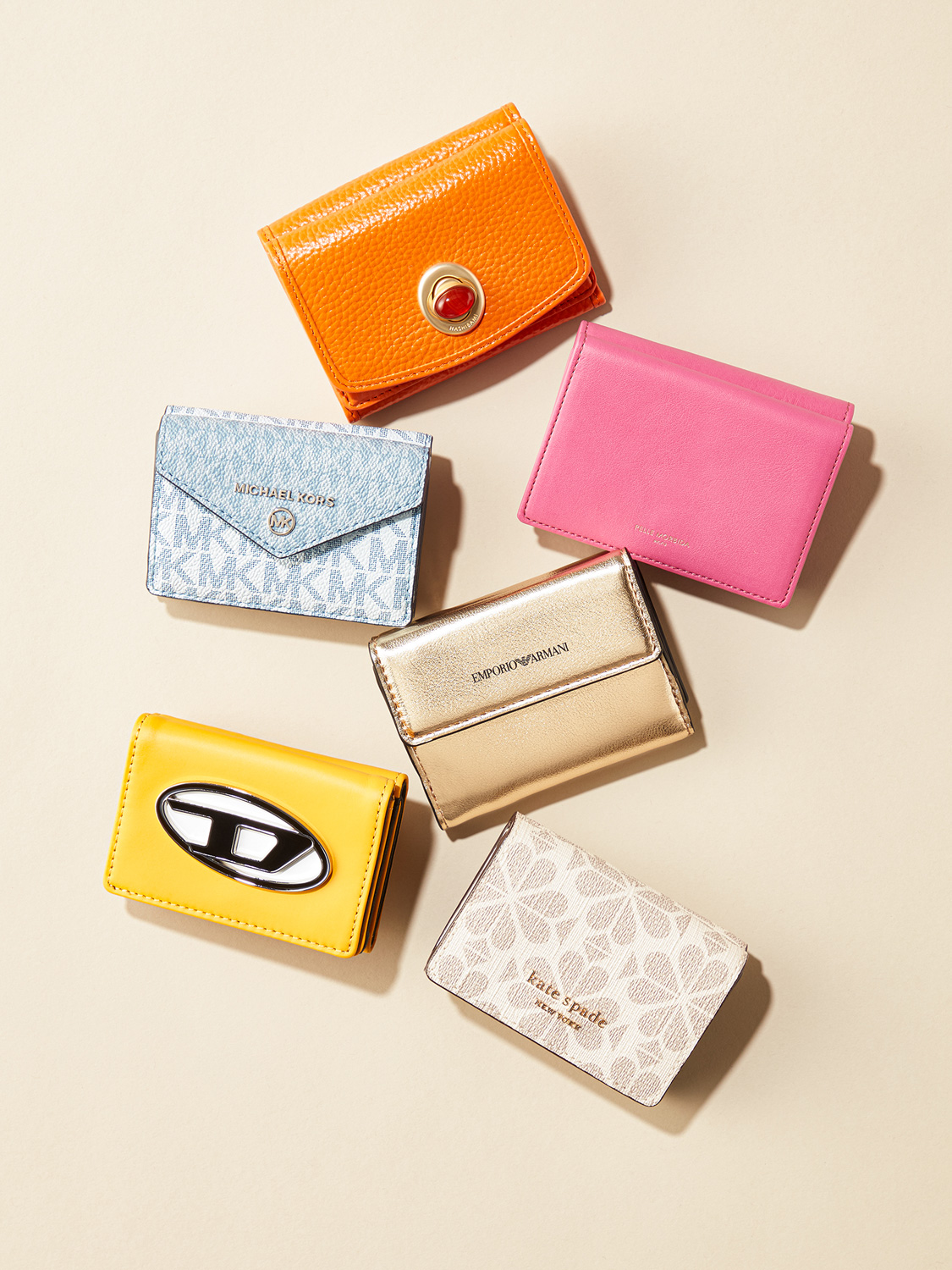 PVCコーティングされた素材を使用したウォレットは、傷つきにくく、長く愛せる優秀選手。シーズン問わず持てるのはもちろん、コンパクトな掌サイズだから、旅先からワンマイルなお出かけまでさまざまなシーンで活躍します。スペードフラワーが並ぶデザインはまるでクローバーのようで、新たな幸運をもたらしてくれそうな予感…♡