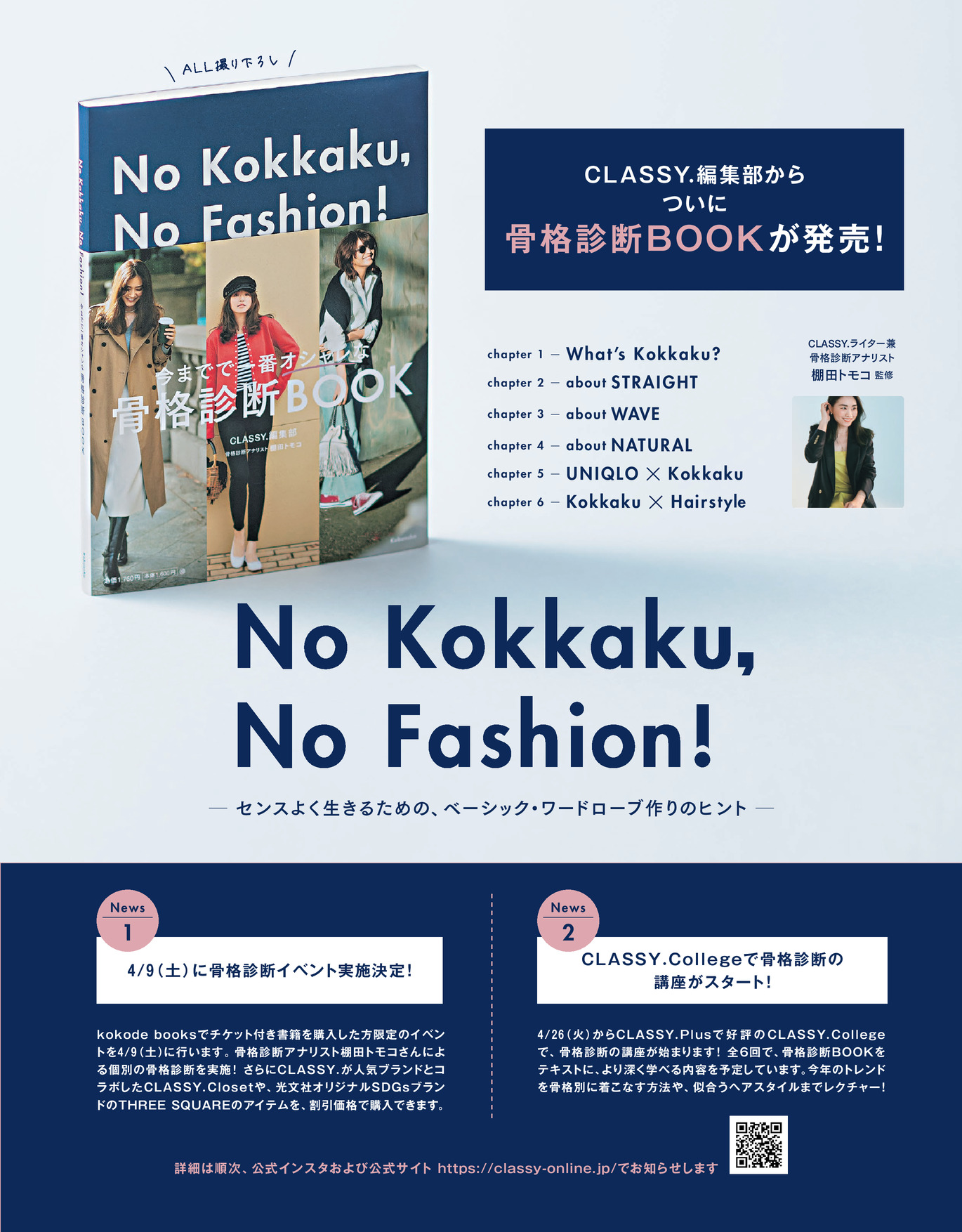 今回の本は、似合うテイスト、次に買っておくといいもの、ヘアスタイル…いつもCLASSY.のテイストが好きな読者なら絶対に保存版になる内容となっております。