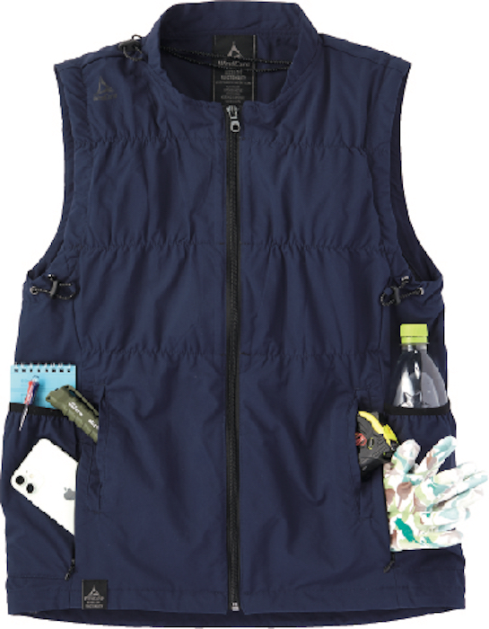 外側に7つ、内側に5つのポケットがある「涼しく着るカバン」になるベスト。12のポケットを必要とするアウトドア、ガーデニング、作業用などのに最適。