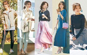体が薄く肌が柔らかいので、まとう生地も軽やかなものがしっくりきます。似合うものに可愛らしいデザインのものが多い骨格タイプなので、ネイビートーンを軸にアクセントでピンクを効かせて大人っぽく仕上げるのがCLASSY.的ポイント。