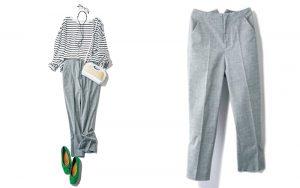 1.ボーダーをきれいめに着たい日の名脇役はグレーパンツ