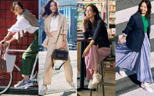 通勤にはパンプス、の常識が変わってきています。社内では履き替える人も、通勤にはスニーカー派が急増。歩きやすくて楽ちんなうえにトレンド感もある。ジャケットスタイルやキレイめボトムスなど、いつものお仕事服に絶妙な抜け感とヘルシーなニュアンスを与えてくれます。