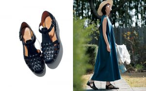 1873年創業の、英国老舗シューズブランドであるチャーチ。こちらはウィメンズのグルカサンダル〝ケルシー〟というデザイン。甲部分の編み込まれたレザーが足をちゃんとホールドするうえ、ラフすぎない上品なムードを演出します。シューズ¥144,100(チャーチ/チャーチ クライアントサービス)