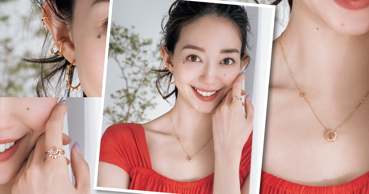眩しい輝きの太陽がテーマのコレクション。上品で柔らかい煌めきのオレンジムーンストーンを主役に、華やかでありながら大人っぽい夏のジュエリーが勢ぞろいしました。服がシンプルになる夏だから、贅沢にレイヤードして楽しむのがおすすめ。