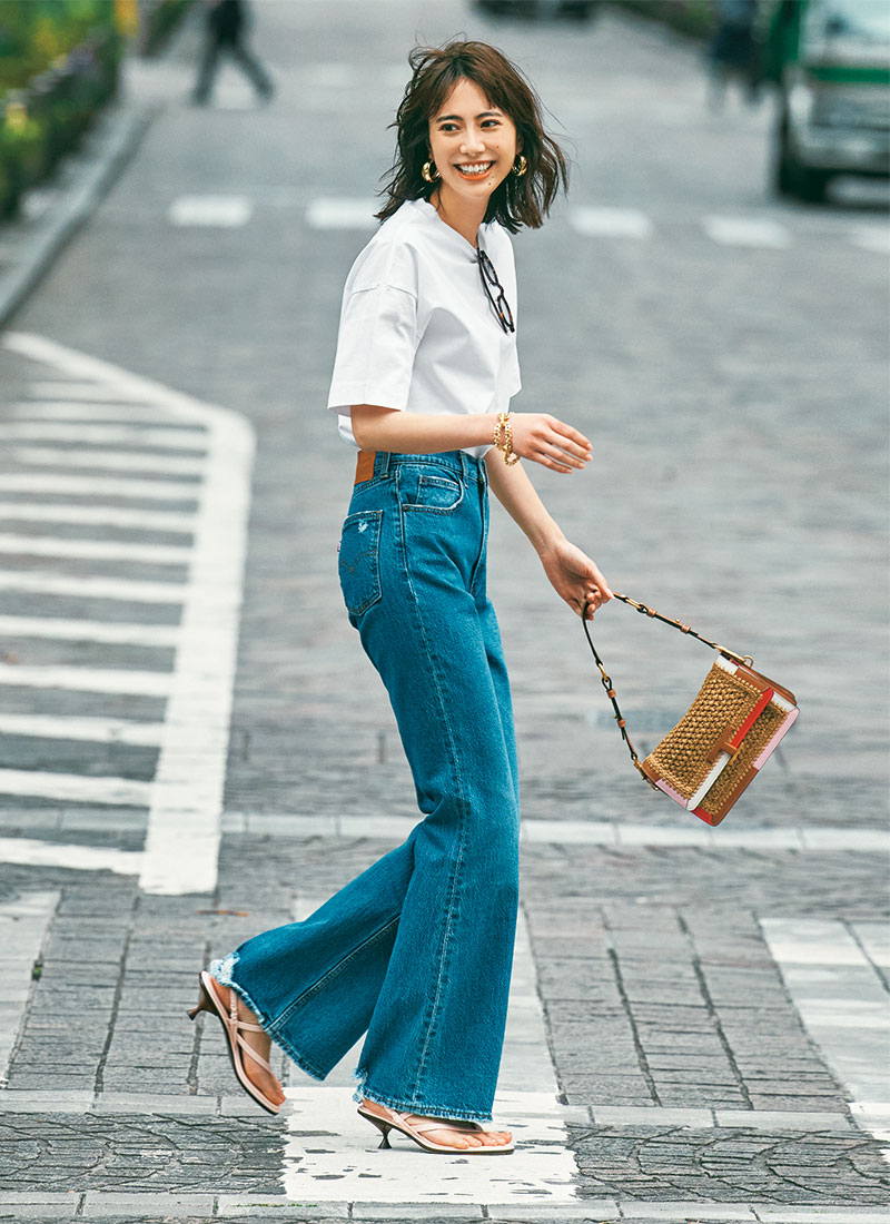 ゆるT一強時代がしばらく続いていたけれどジャストサイズTが新鮮に映る今シーズン。デニムはハイウエスト人気はそのままに、ストレートに加えてフレアシルエットがカムバックの気配。どう組合せると今っぽい?とっておきの2コーデを発表します。