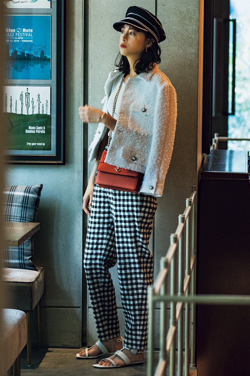 愛らしいチェックを小物でさらり、それだけでベーシックが一段洒落見え