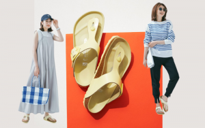 「ポップコーン」というキャッチーなカラー名の、「ビルケンシュトック」のトングサンダル。上質なエナメルレザーの風合いと、極上の履き心地が贅沢!本企画でモデルを務めた、有末麻祐子さんは「都会っぽいコーデでも、アスレジャーコーデでも楽しめるバターイエローが今年っぽさを後押ししてくれる!ビルケンシュトックは毎年チェックする大好きなブランドのひとつ。マニッシュにコーデをハズせる、強い味方になってくれます」とコメント。