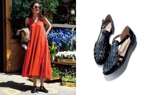 キレイ色や背中見せを筆頭に、1着で着映えるワンピは夏のおしゃれに欠かせない。ビーサンやスポサンのようなラフさと、今どきのモード感を備えたグルカサンダルを味方にすれば、大人の余裕漂うワンピスタイルが簡単に!