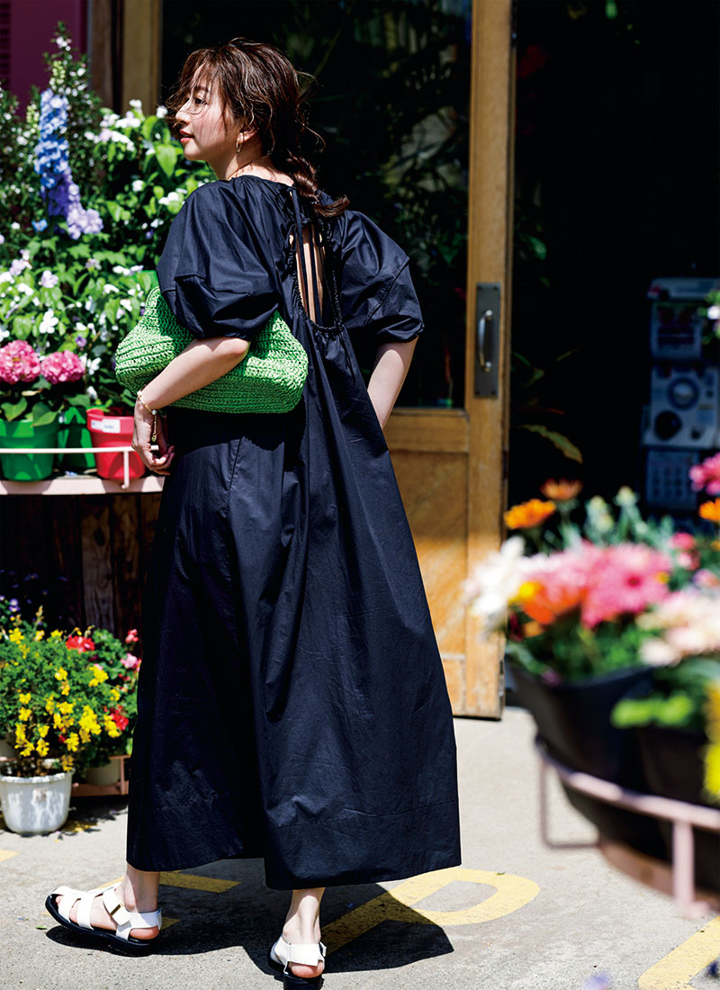 今どきな抜け感を作る一足に頼れば背中開きワンピも気張って見えない