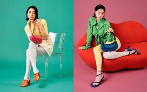 着用アイテムは、カラフルなカラーパレットと存在感のあるデザインが特徴の「サマーコレクション 2022」からセレクト。色鮮やかで心躍るような世界観の中にも、ハイセンスなディテールが映える着こなしに注目です。シースルー素材のブルーのバッグは、ミニマルで洗練された雰囲気が特徴です。ヴィヴィットなピンクが目を引くショルダーバックは、コンパクトなサイジングの本体に、大ぶりのチェーンストラップがアクセント。90年代のジェリーデザインからインスピレーションを得たラバーサンダルは、ヒールをチョイスすることでエッジィかつ品のある足元を演出します。