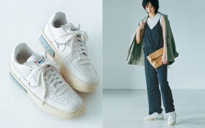 ドットのセットアップにさらっとジャケットを羽織ったスタイルに、クールなエアフォースがマッチ。一歩先ゆくカジュアルが完成。スニーカー¥14,300(ナイキ スポーツウェア/NIKEカスタマーサービス)ジャケット¥53,900(サクラ/インターリブ)キャミブラウス¥8,800パンツ¥9,900(ともにスローブ イエナ/スローブ イエナ自由が丘店)カットソー¥5,500(ビューティ&ユース/ビューティ&ユース ユナイテッドアローズ丸の内店)バッグ¥121,000(ザンケッティ/room3138)ネックレス¥18,700(イン ムード/フォーティーン ショールーム)ブレスレット¥29,400(アビステ)
