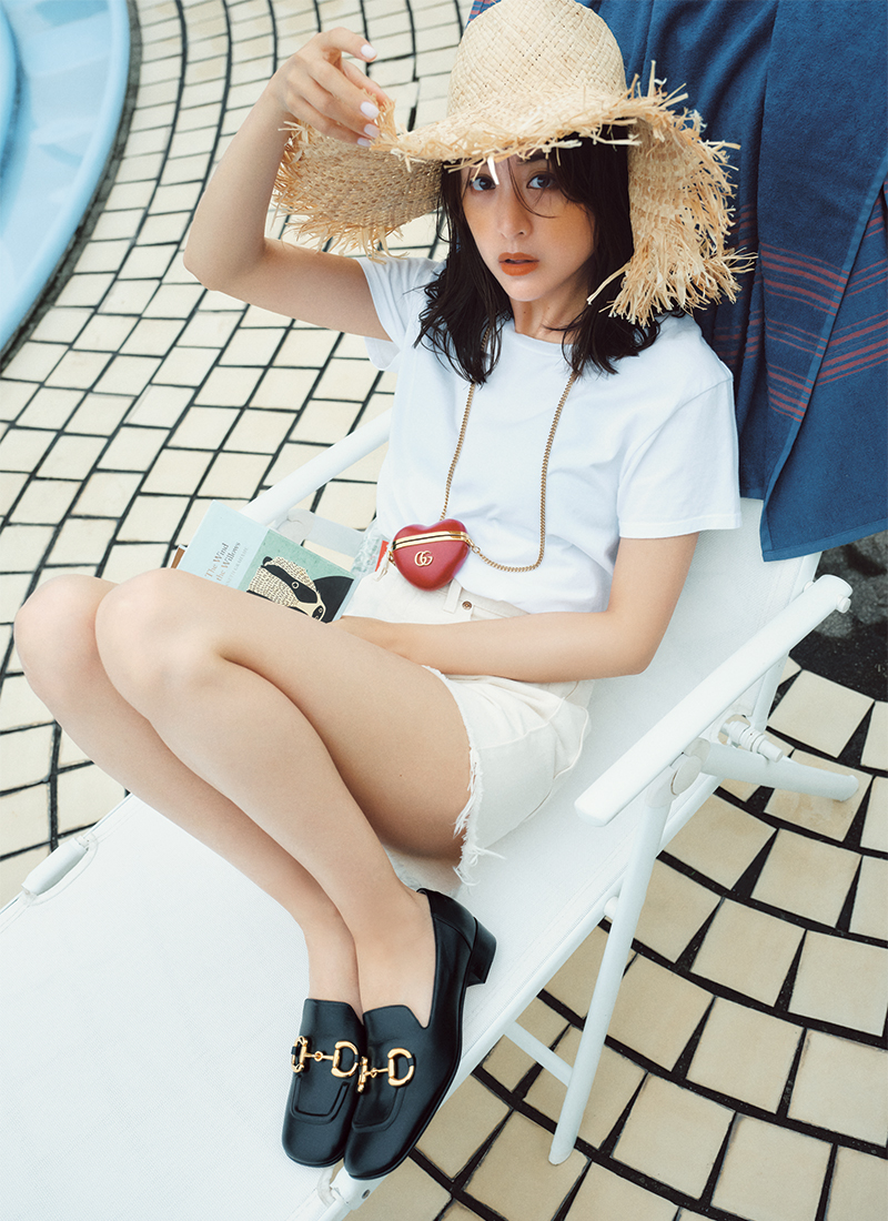 グッチのアイコンであるホースビットが主役。シンプルなフォルムと少しのヒールが、足を美しく見せてくれる。ローファー〈H2.5㎝〉¥135,300 Air Podsケース¥92,400(ともにグッチ/グッチ ジャパン)カットソー¥2,970(ヘインズ/ヘインズブランズ ジャパン カスタマーセンター)パンツ¥9,900(リー/エドウイン・カスタマーサービス)ハット¥9,900(カテリーナ ベルティーニ/カレンソロジー青山)