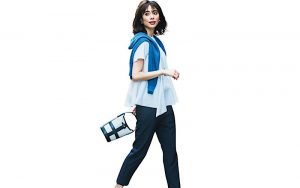 7月4日(月)、王道の「テーパードパンツ」は、ひとクセあるペプラムカットソーと合わせてマンネリ見えを回避。ワンツーコーデでシンプルなぶん、肩がけカーディガンや小物でアクセントを。スクエアトゥのパンプスなら、コンサバになりすぎず、ひとさじのモードさが加わります。