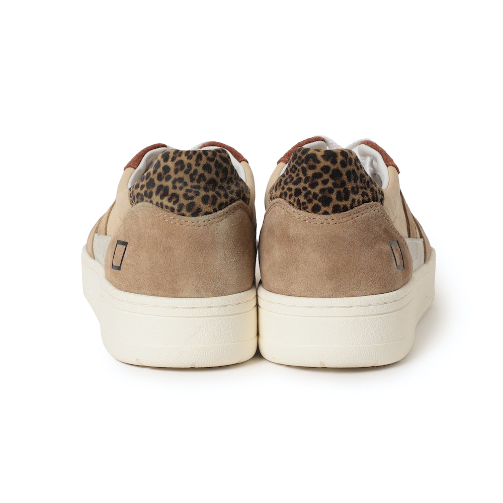 また、7月中旬には「D.A.T.E」の人気モデル「COURT2.0」からも別注カラーが発売予定。ブラウントーンを中心に、テラコッタとレオパード柄をあしらい、夏にはもちろん秋の初めのコーデにもしっくり来る仕上がり。レトロなコートスニーカーをヒントに得た厚底ミッドソールも、これまたスタイルアップ効果満点。ソフトなインソールがクッション性のある履き心地を実現し、“楽ちんなのにスタイルアップ”が叶います。