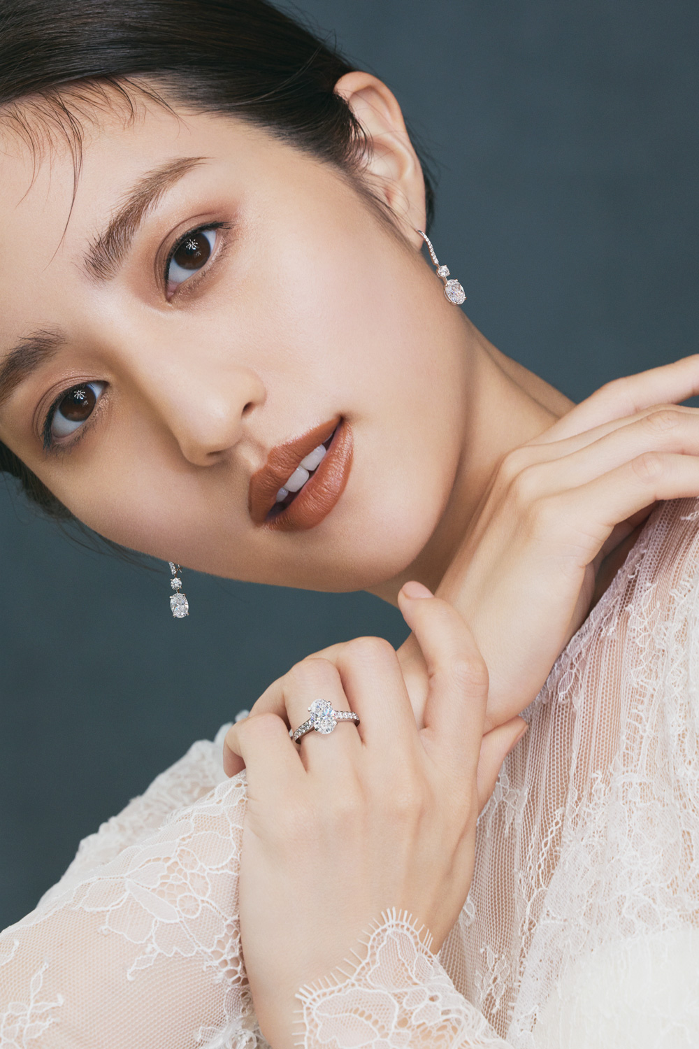 人生に一つだけのエンゲージリングだから、自分らしさを大事にしたい。繊細なレースドレスに優雅なオーバルシェイプのダイヤモンドを合わせれば、正統派クラシックのなかに今どきのおしゃれなムードが漂うワンランク上の花嫁に。思わず目を奪われる凜とした美しさに、エターナルな幸せへの確信を込めて。