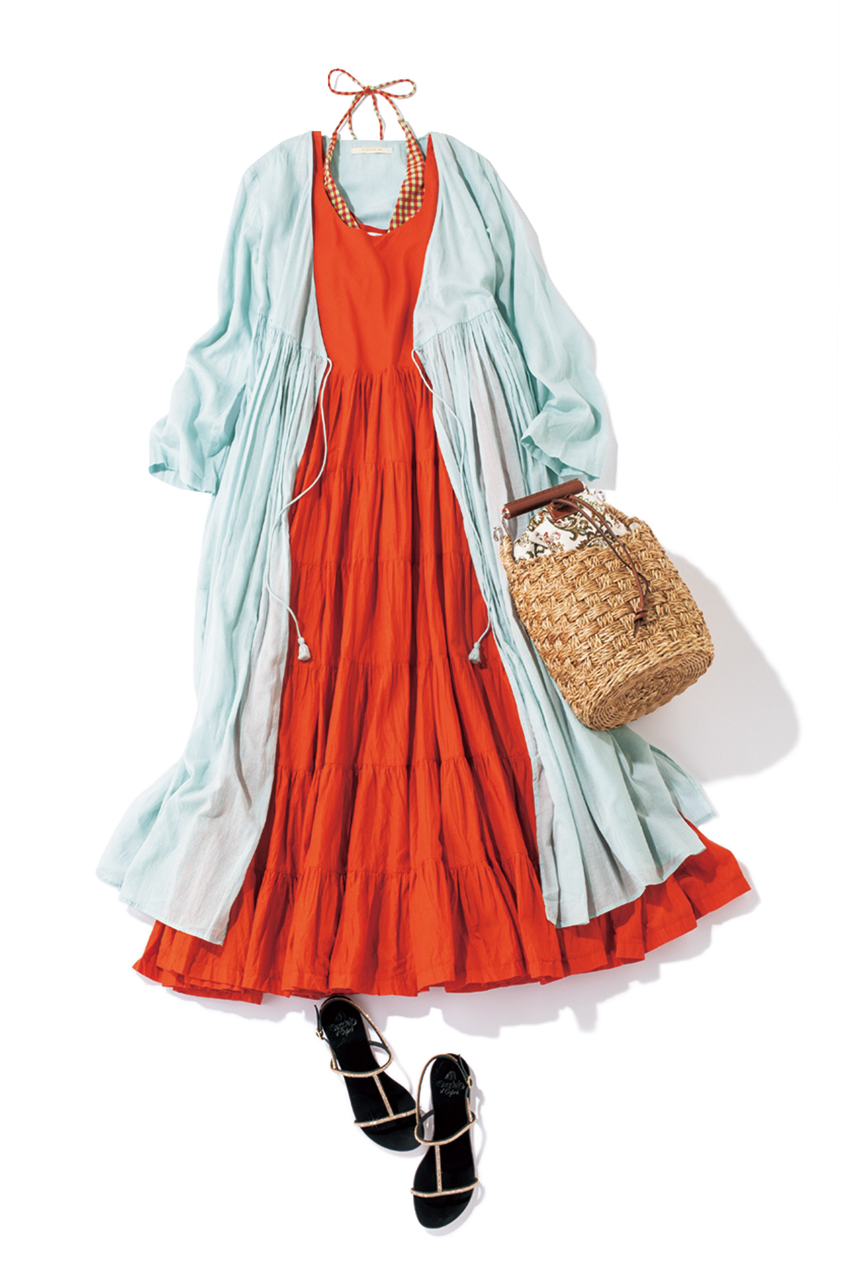 水着の上に羽織るのも◎。背中側はリボンで結ぶ仕様になっています。¥39,600(サクラ/インターリブ)