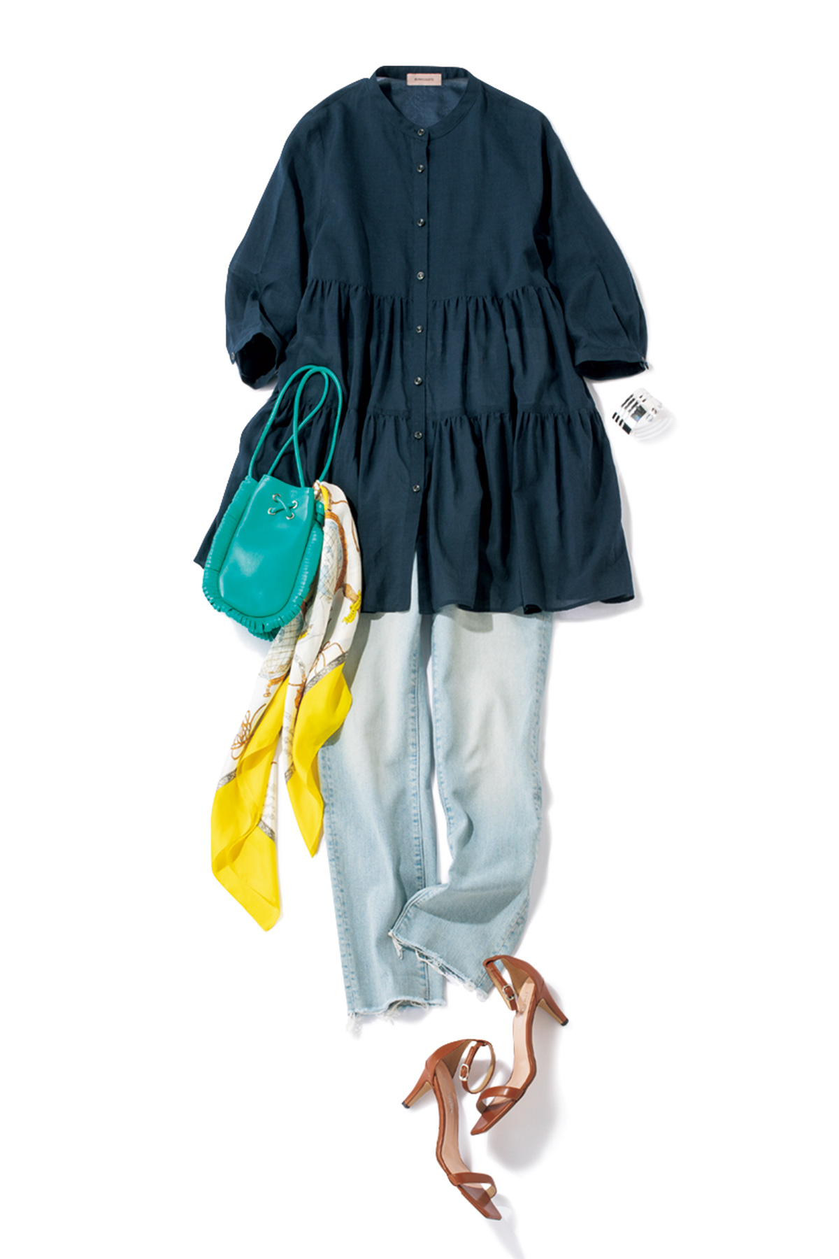 透け感のある生地が今っぽい。チューブトップやキャミソールを忍ばせて。¥7,700(THIRD MAGAZINE)
